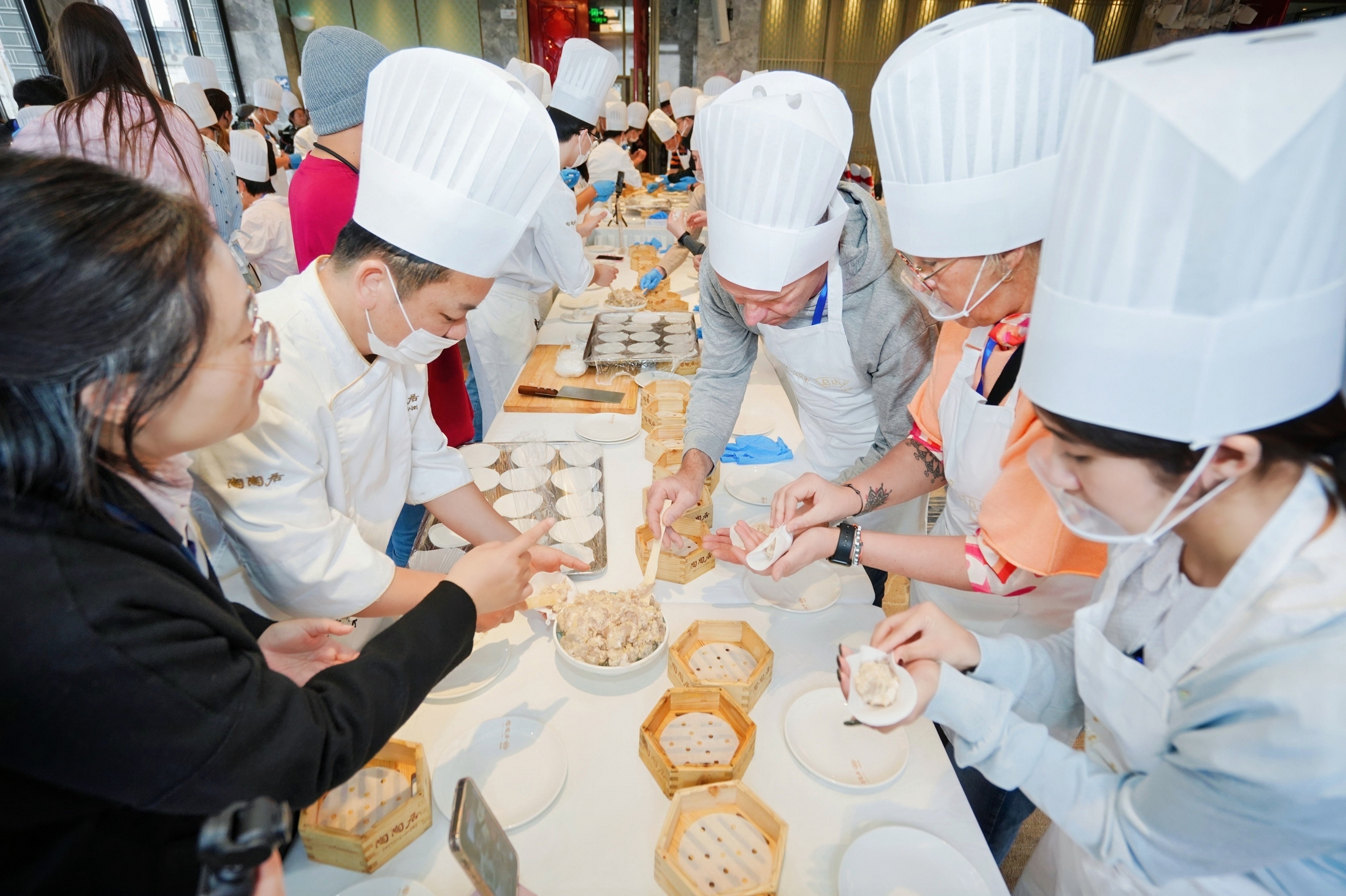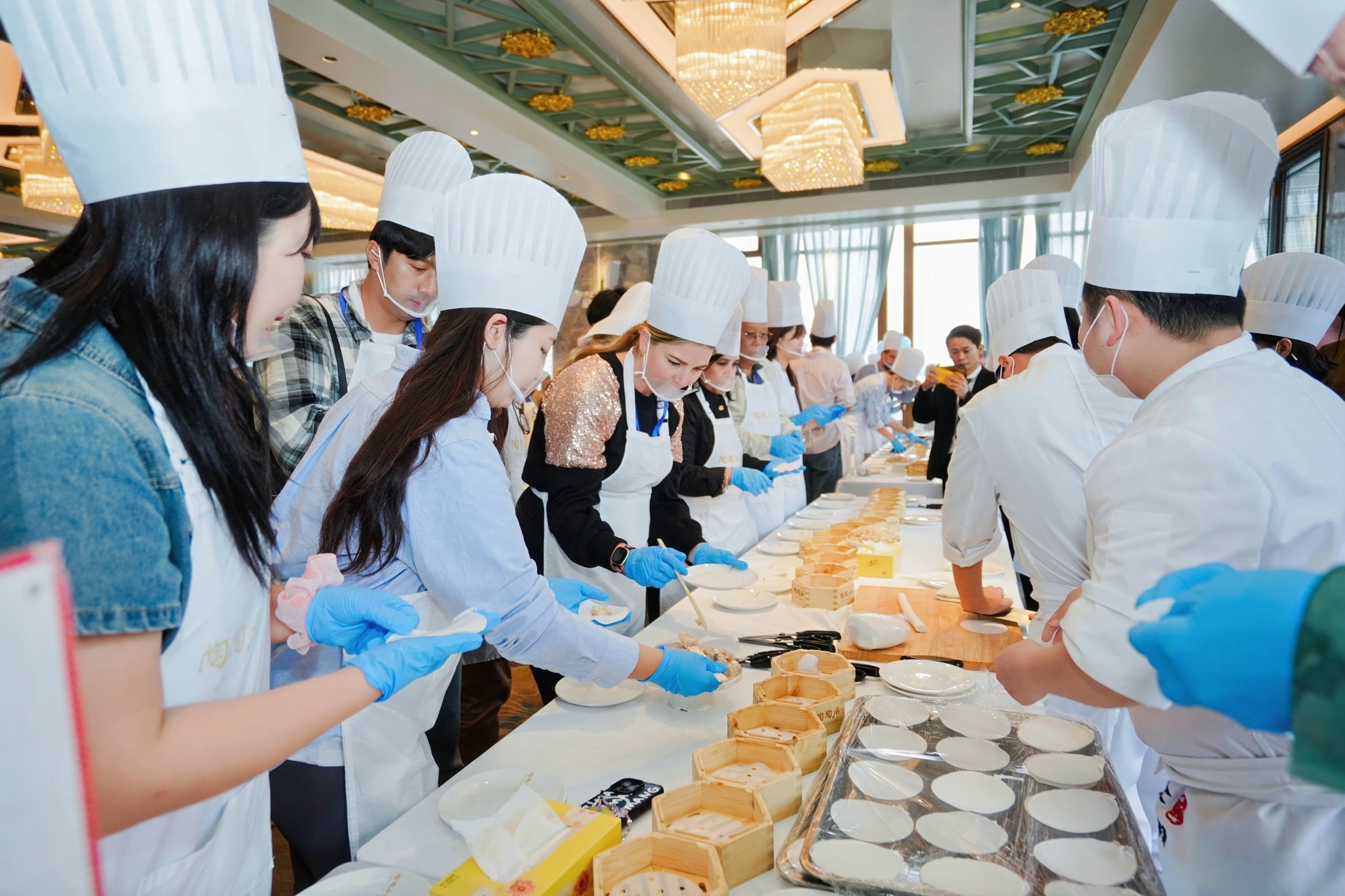 “我平时很爱吃虾,亲手包虾饺感觉还蛮兴奋的。虽然一开始包得不好看,但是慢慢上手后已经包得有模有样了!”来自马来西亚的华人博主黄瑸霏(BELLE BONG PING FEI)捧着自己包好的虾饺,开心地在媒体镜头面前展示。黄瑸霏表示,平时很少在家做粤菜,比较常做的还是马来西亚菜,但经常去中国菜馆吃饭,“我们常吃豆沙包、叉烧包、烧卖、糯米鸡,都很喜欢。”