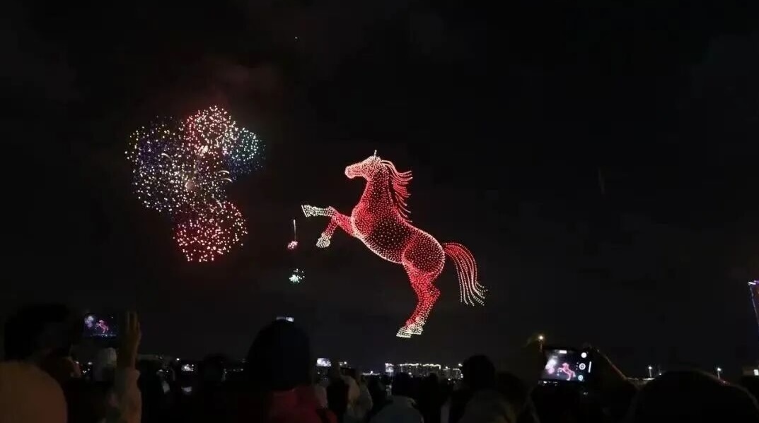 春节期间,梅州以“非遗+科技”融合点亮“客都”新春。在院士广场,国家级非遗“烧火龙”与创意烟花、1200架无人机造就的光影秀等现代景观共同上演,为市民游客呈现了既传统又炫酷的视觉盛宴,客家年味在科技赋能下焕发出全新魅力;在平远县,无人机秀中呈现脐橙、五指石、世界第一天然卧佛等本土元素,突出“科技光影+生态优品”特色。